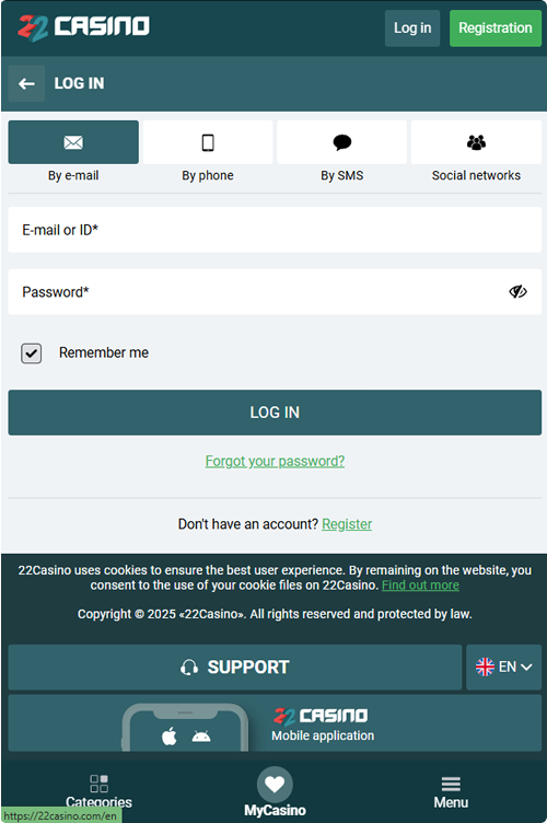We would like to remind players that 22Casino also uses the latest encryption technology to keep their personal information safe at all times. Moreover, different login methods enable players to enhance the security mechanics.